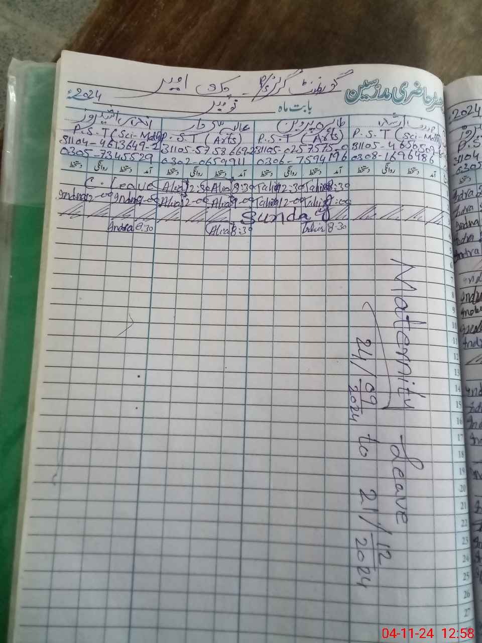 | 31**** | Sa**** Ar**** | Contract | 22 | 0 | 0 | 22 | 0 | 0 | 0 | 0 | 0 | Maternity | |