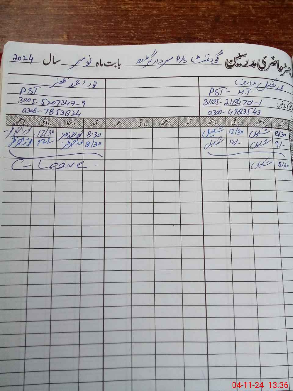 | Name: MU**** Sh**** Designation: (School Headmaster's/Headmistress's) PST Phone/Cell Number: 03**** |