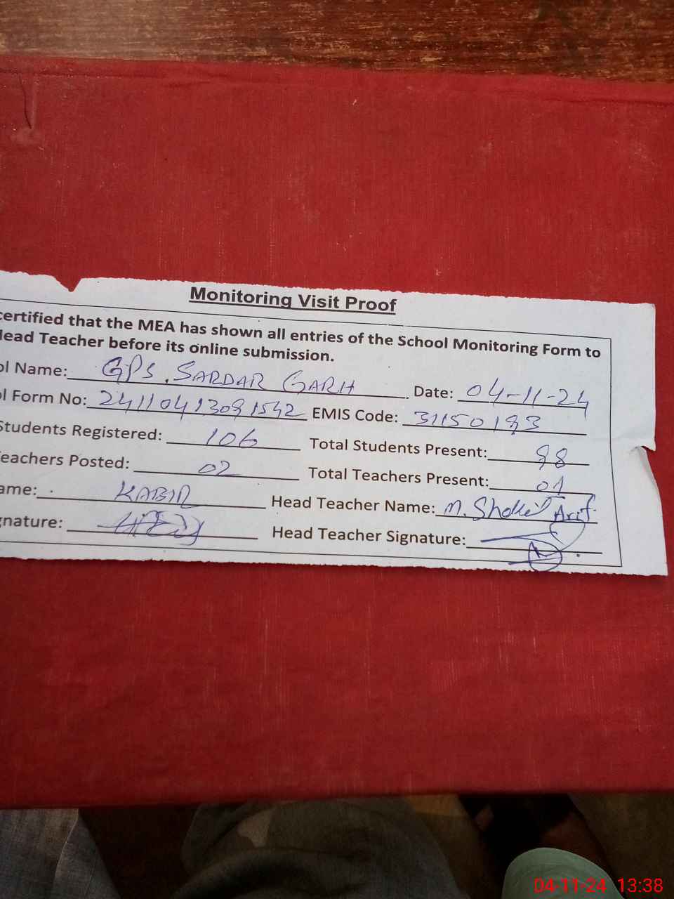 | EMIS Code: 31150193 | Name of School: GPS SARDAR GARH | |||