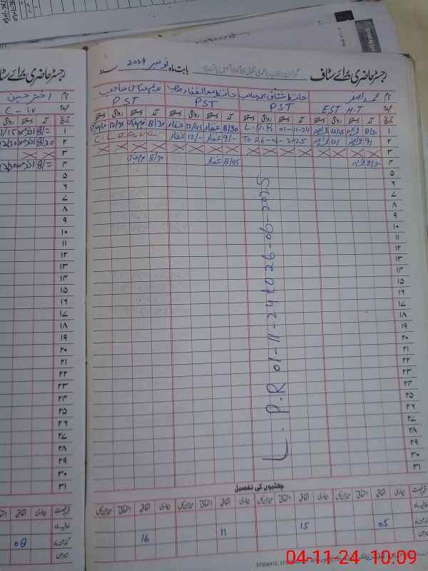 | CNIC | Full Name | Designation | R/C | Absence During Last Calender Month |