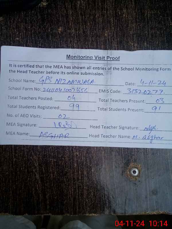 | EMIS Code: 31320277 | Name of School: GPS MOADIB NIZAM WALA | |||
