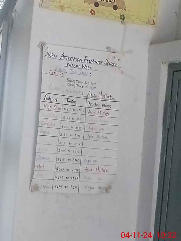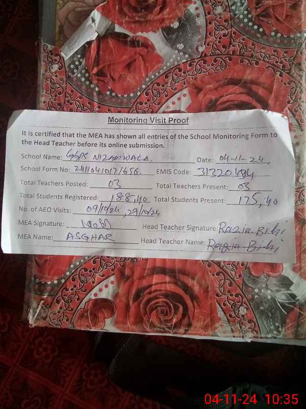 | EMIS Code: 31320434 | Name of School: GGPS NIZAM WALA | |||
