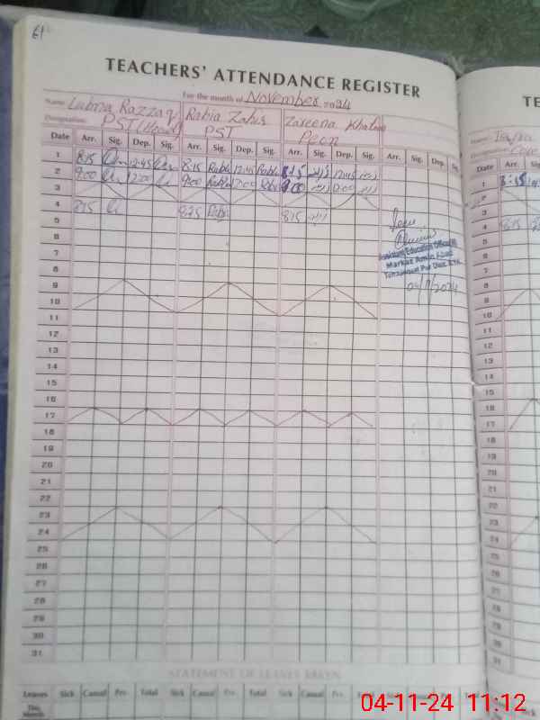 | Attendance Register | Head Teacher | MEA with School | Visit Proof |