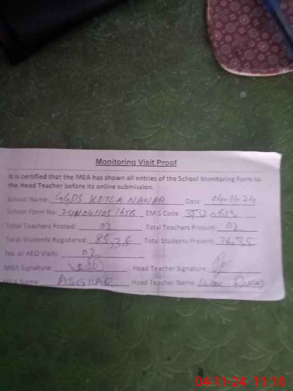 | EMIS Code: 31320613 | Name of School: GGPS NAWAB KOTLA NAWAB | |||