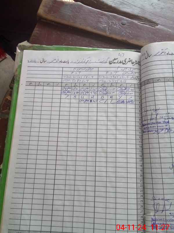 | Name: SA**** AH**** Designation: (School Headmaster's/Headmistress's) PST Phone/Cell Number: 03**** |
