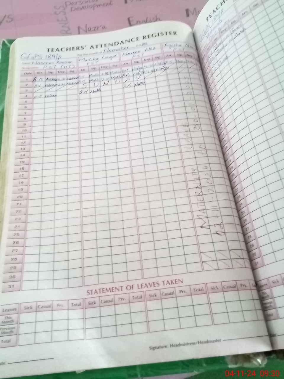 | Remarks (Use Separate Page if Required): PST Ayesha Noureen sanctioned leave not provided | |||||