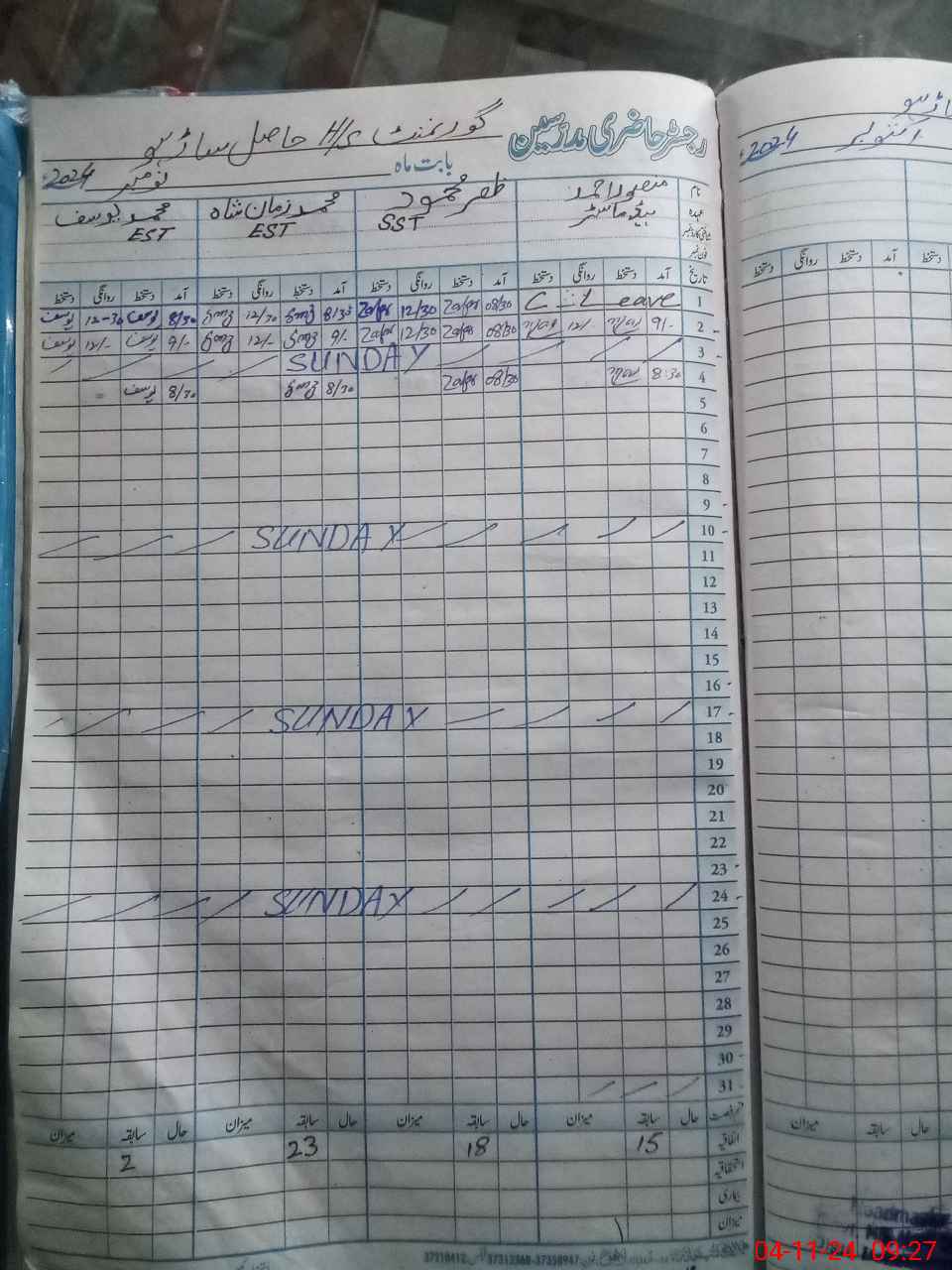 | 31**** | Wa**** Sa**** | JC | 0 | 0 | 0 | 0 | 0 | 0 | 0 | 0 | 0 | Absent (Un-Authorized) | |