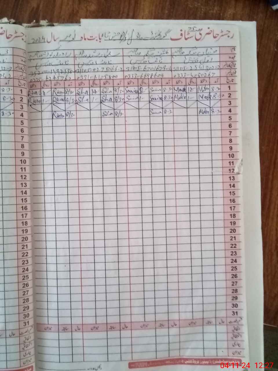 | CNIC | Full Name | Designation | R/C | Absence During Last Calender Month |