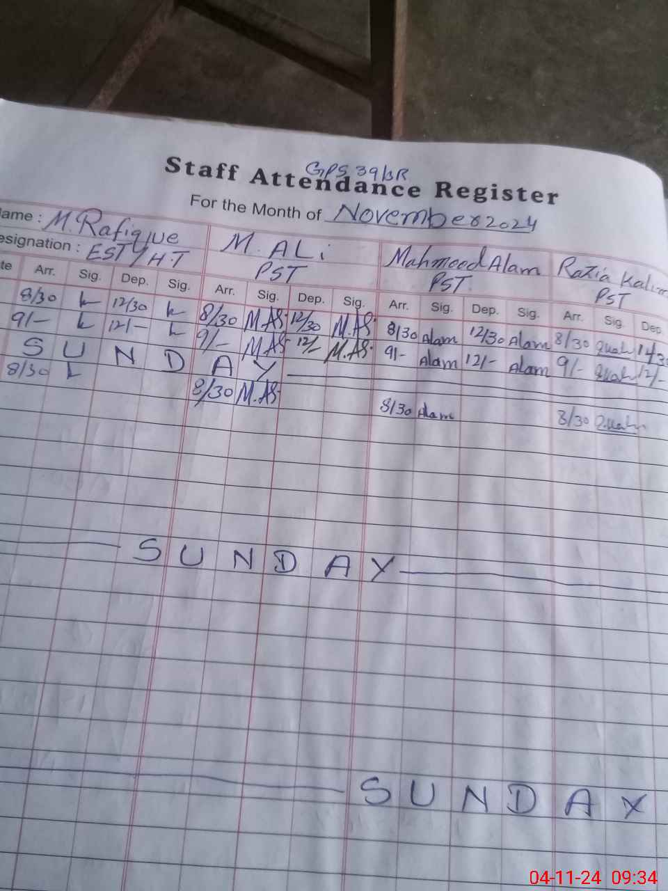 | Monitoring Date: 04-11-2024 | Start Time: 04-11-2024 09:32 AM | End Time: 04-11-2024 10:11 AM | Name of MEA: MA**** AH**** | |