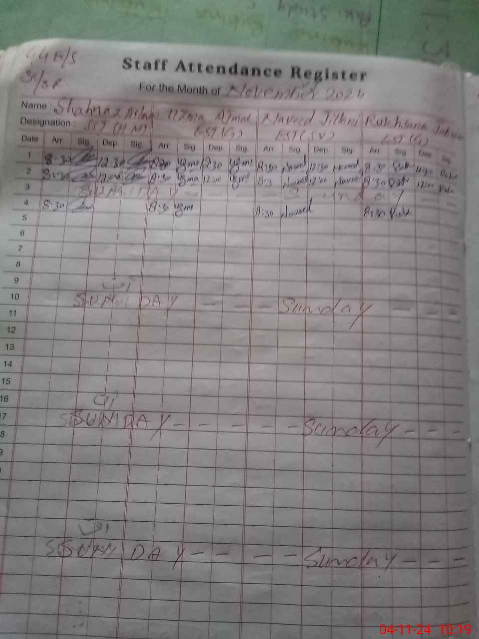 | CNIC | Full Name | Designation | R/C | Absence During Last Calender Month |