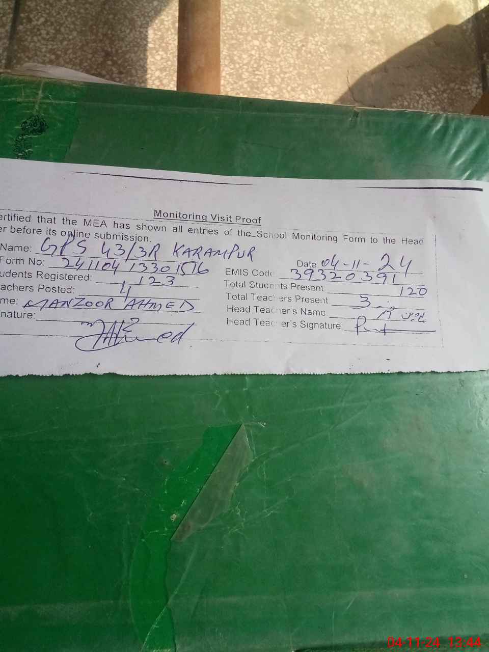 | EMIS Code: 39320391 | Name of School: GPS CHAK NO. 43/3-R KARAM PUR | |||