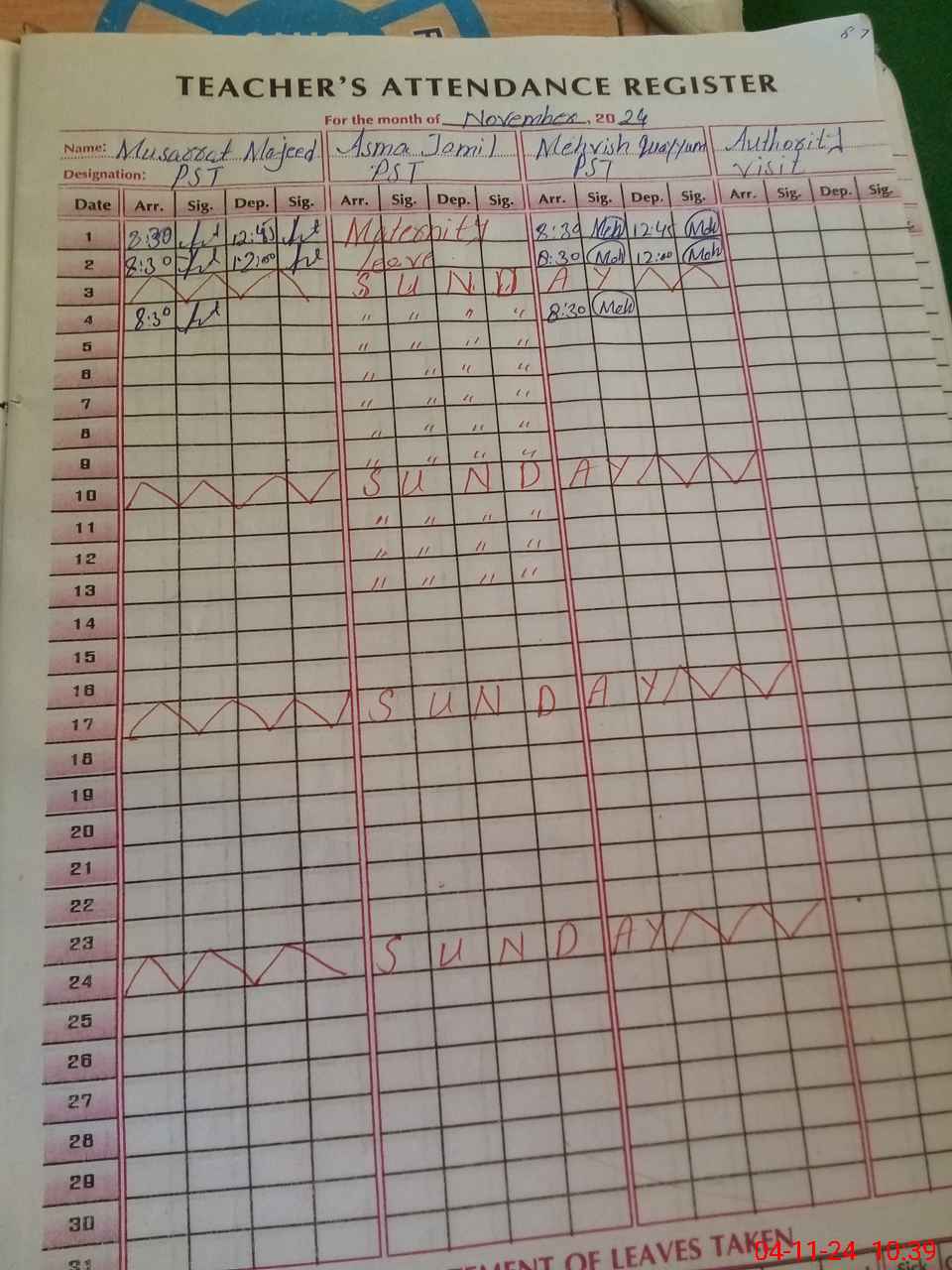 | Monitoring Date: 04-11-2024 | Start Time: 04-11-2024 10:23 AM | End Time: 04-11-2024 10:41 AM | Name of MEA: Ma**** UlHa**** | |
