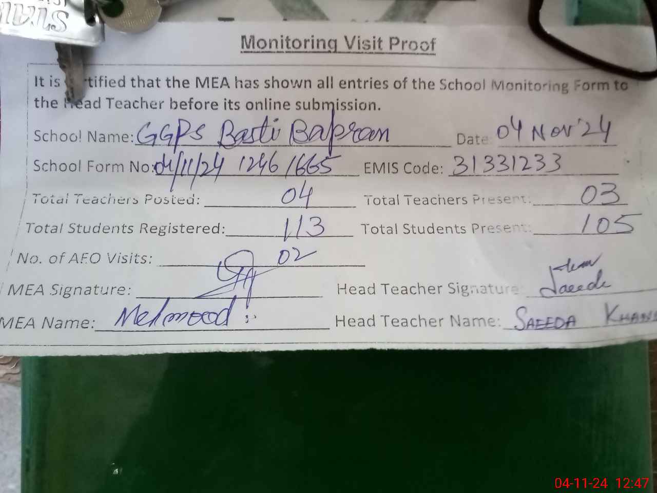 | Monitoring Date: 04-11-2024 | Start Time: 04-11-2024 12:30 PM | End Time: 04-11-2024 12:51 PM | Name of MEA: Ma**** UlHa**** | |