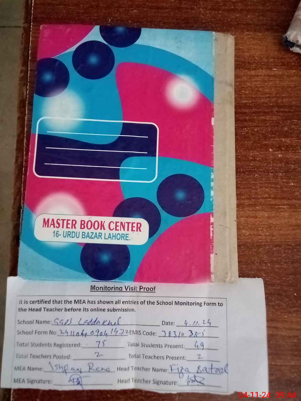 | Attendance Register | Head Teacher | MEA with School | Visit Proof |
