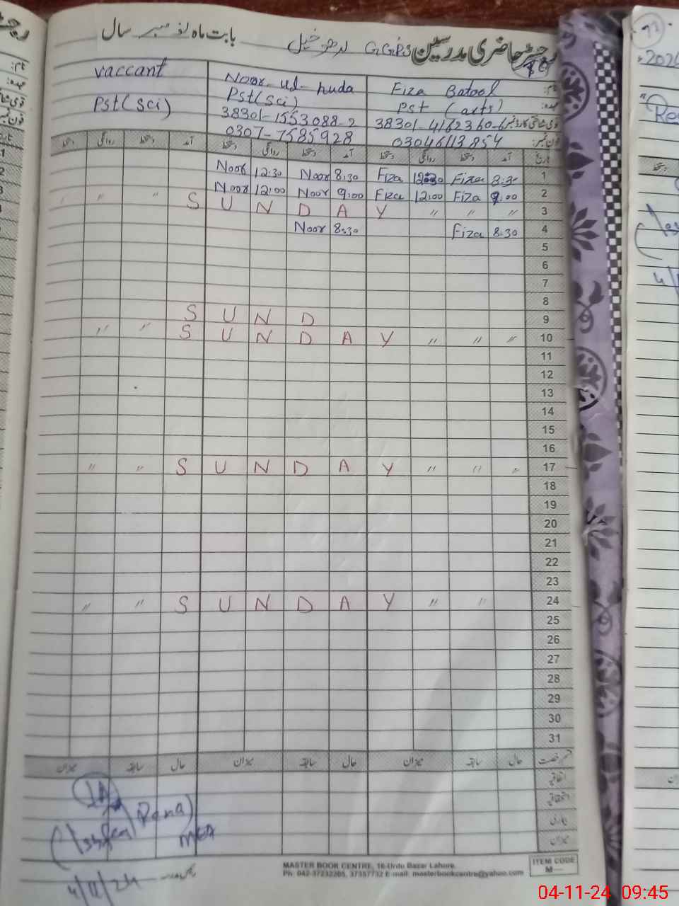 | Name: No**** UlHu**** Designation: (School Headmaster's/Headmistress's) PST Phone/Cell Number: 03**** |