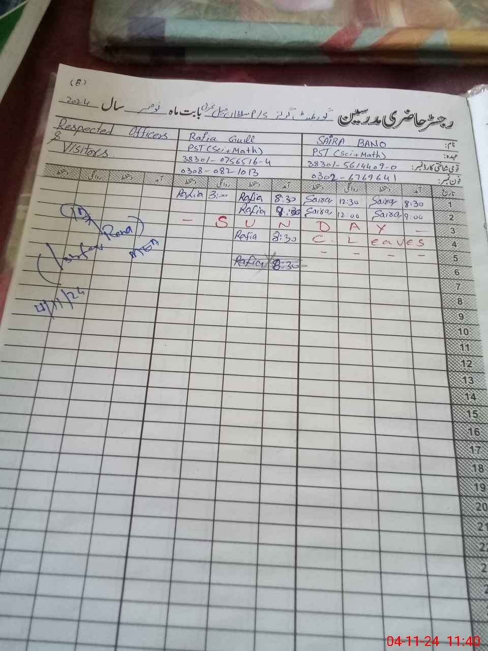 | Name: Ra**** Gu**** Designation: (School Headmaster's/Headmistress's) PST Phone/Cell Number: 03**** |