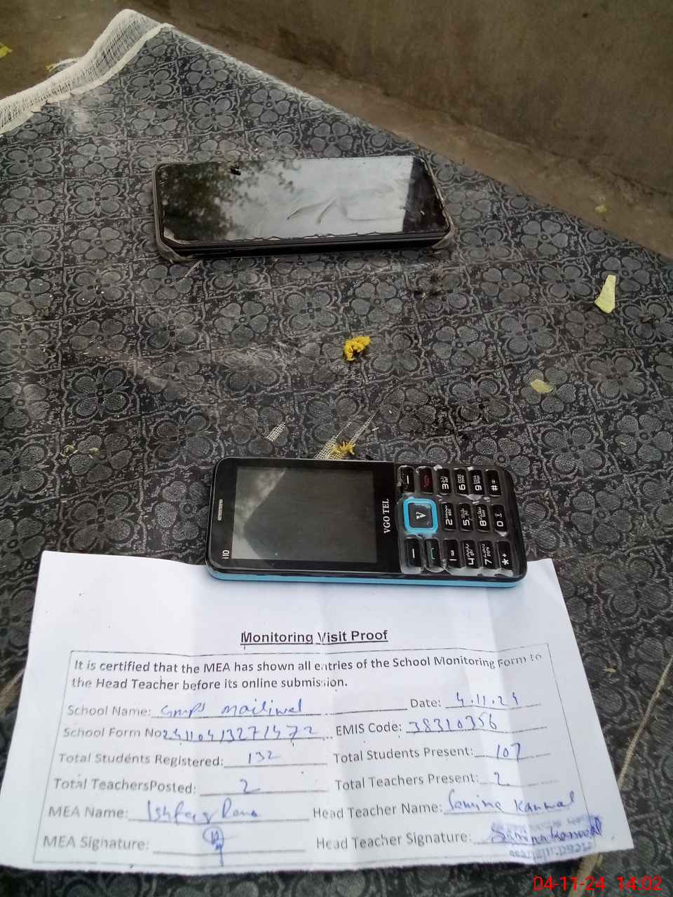 | Attendance Register | Head Teacher | MEA with School | Visit Proof |