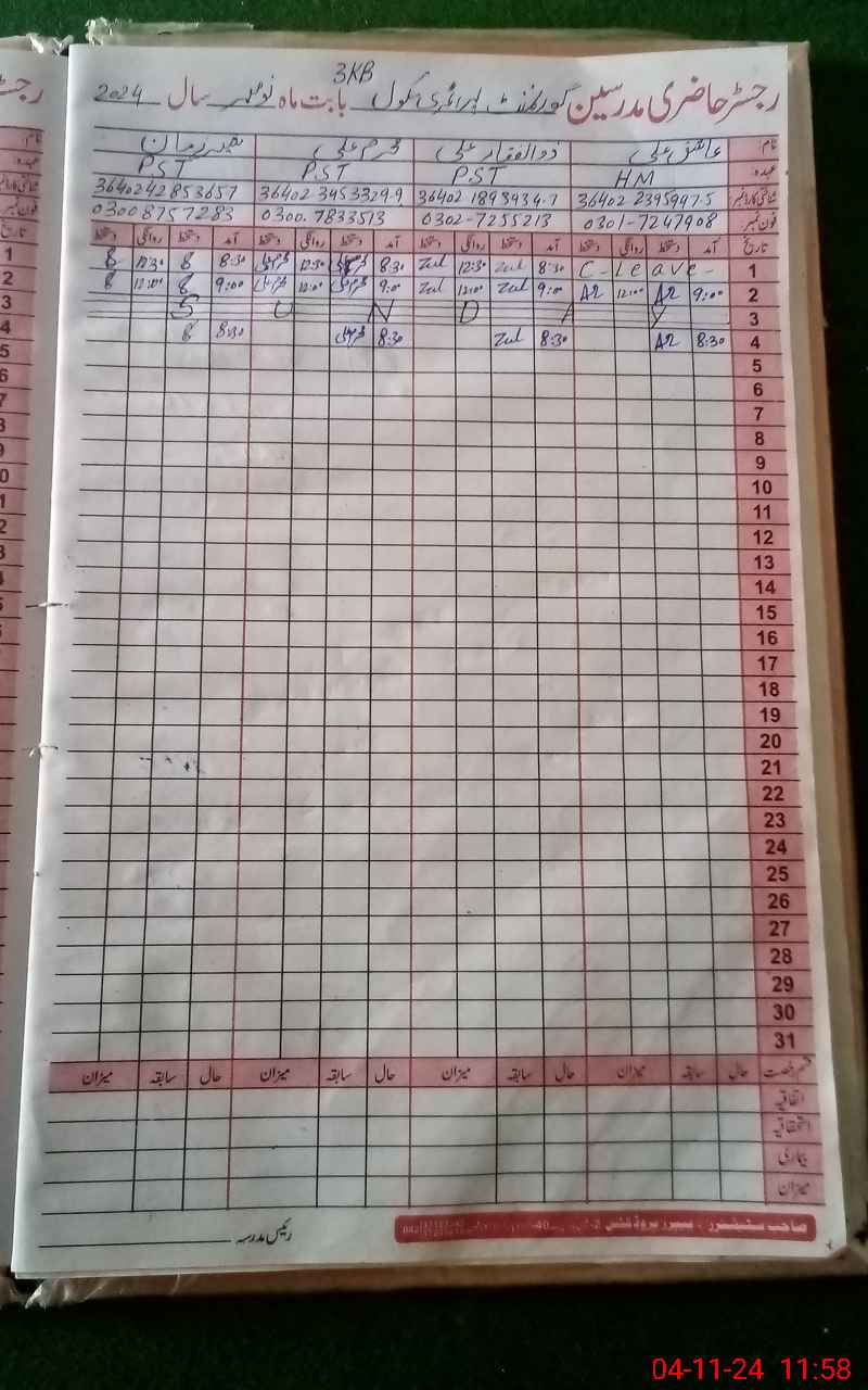 | Name: AS**** AL**** Designation: (School Headmaster's/Headmistress's) PST Phone/Cell Number: 03**** |