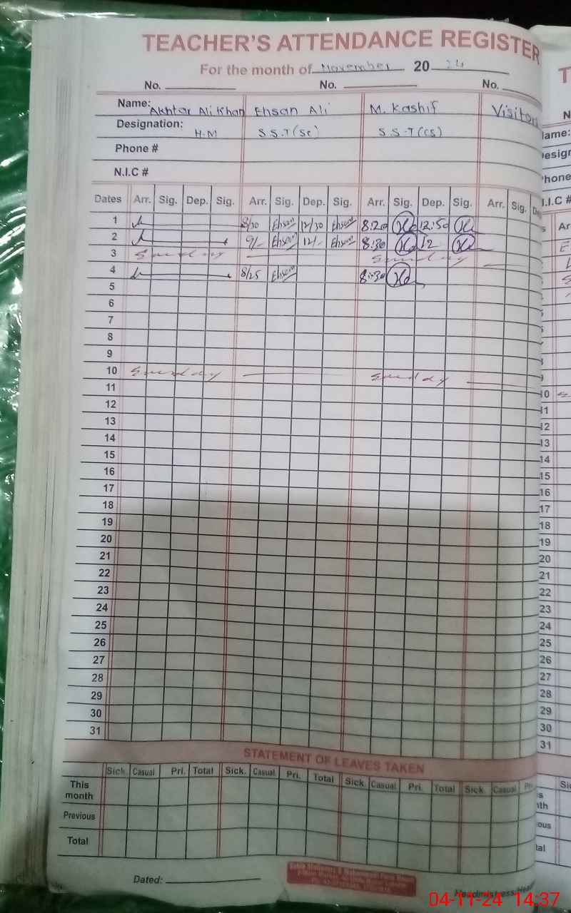 | Name: DrSh**** Al**** Ta**** Designation: (School Headmaster's/Headmistress's) H/M Phone/Cell Number: 03**** |