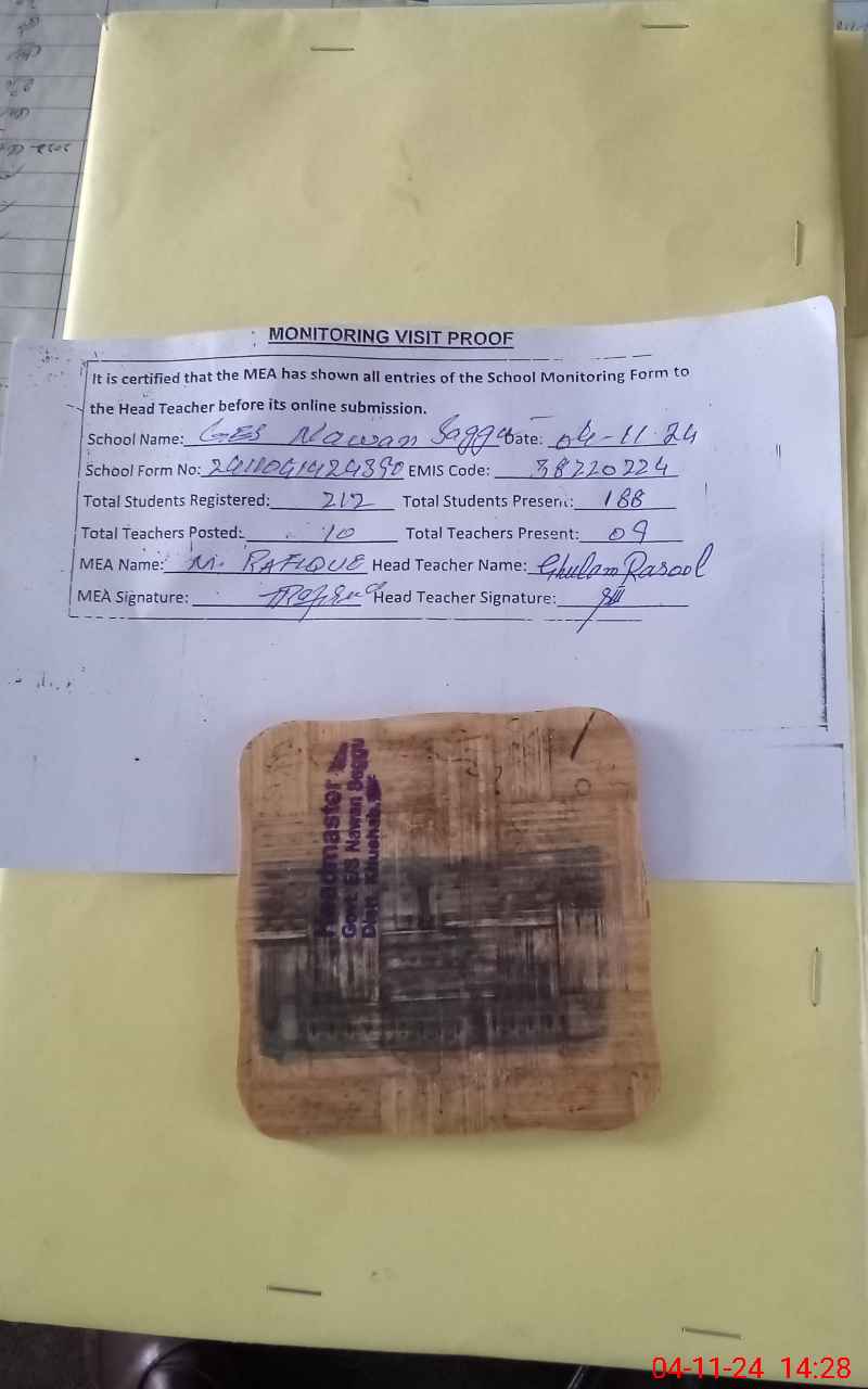 | EMIS Code: 38220224 | Name of School: GHS NAWAN SAGOO | |||