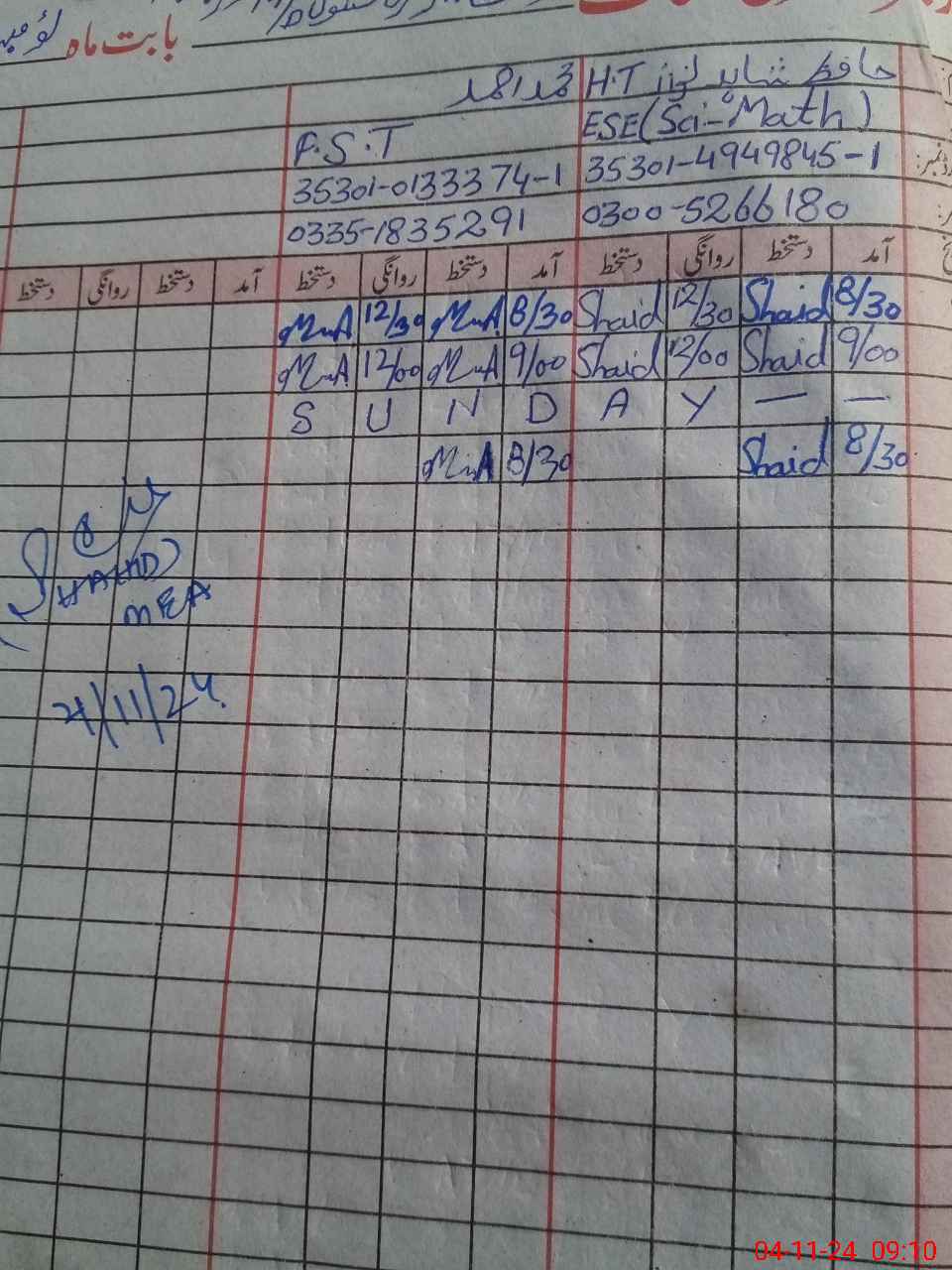 | Name: Ha**** Sh**** Na**** Designation: (School Headmaster's/Headmistress's) PTC Phone/Cell Number: 03**** |
