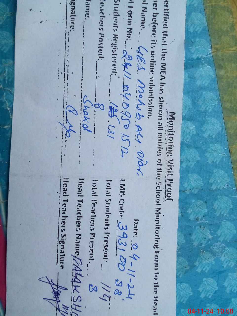 | Monitoring Date: 04-11-2024 | Start Time: 04-11-2024 09:50 AM | End Time: 04-11-2024 10:08 AM | Name of MEA: SH**** YO**** | |