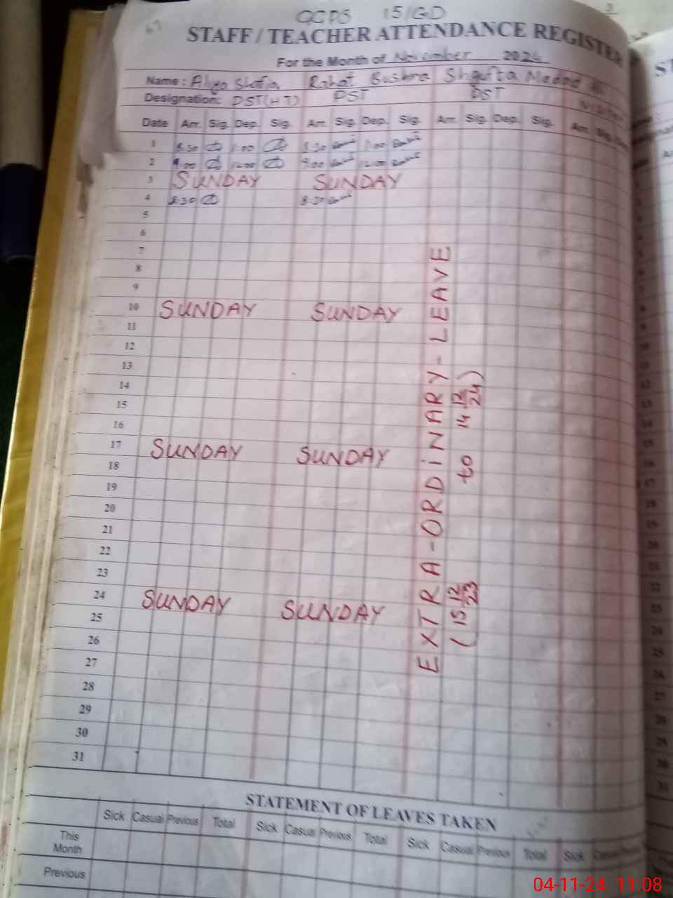 | Leave | Duty | Absent | Maternity | Medical | Ex- Pak |