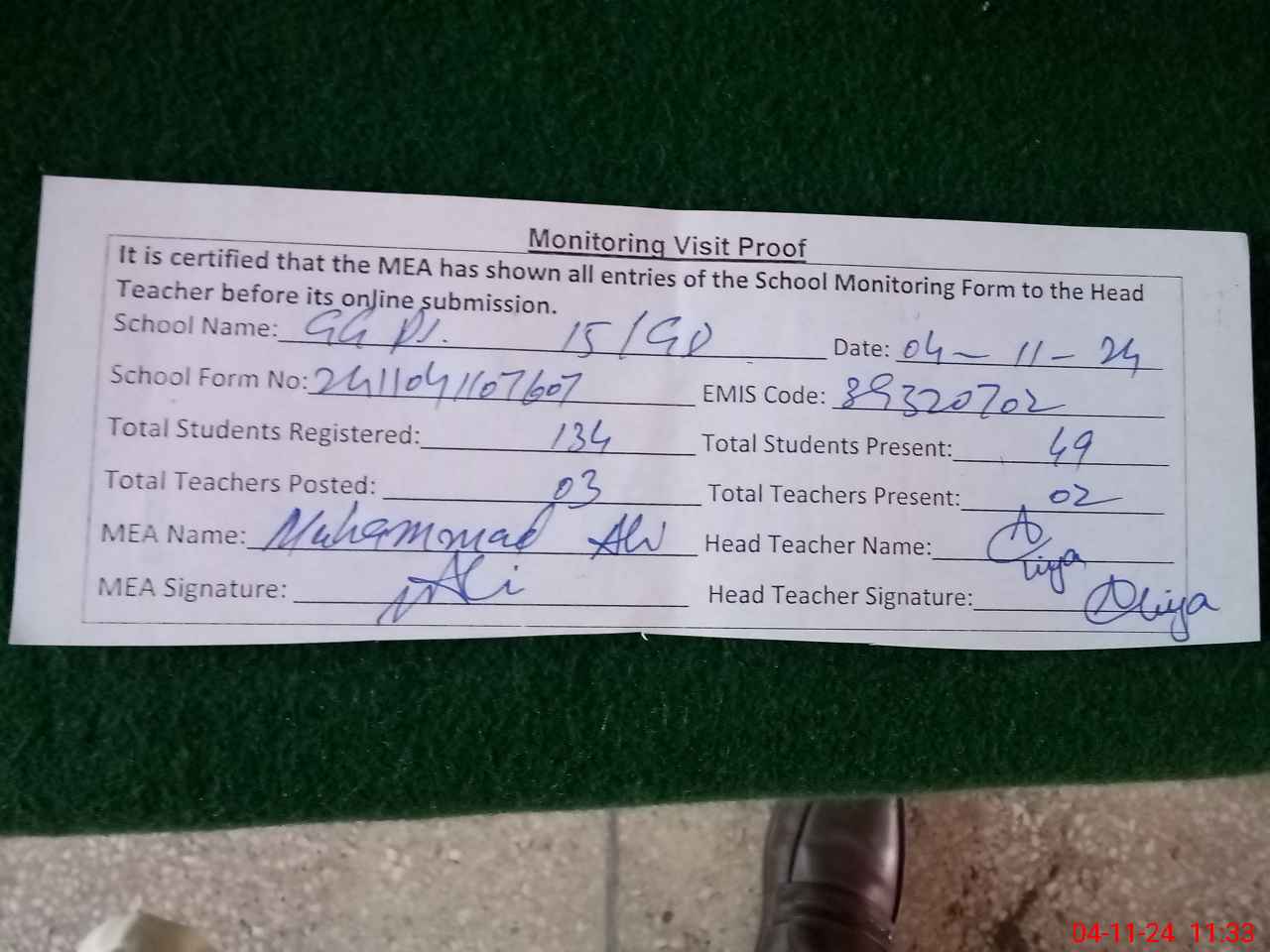 | EMIS Code: 39320702 | Name of School: GGPS CHAK NO.15/G.D | |||