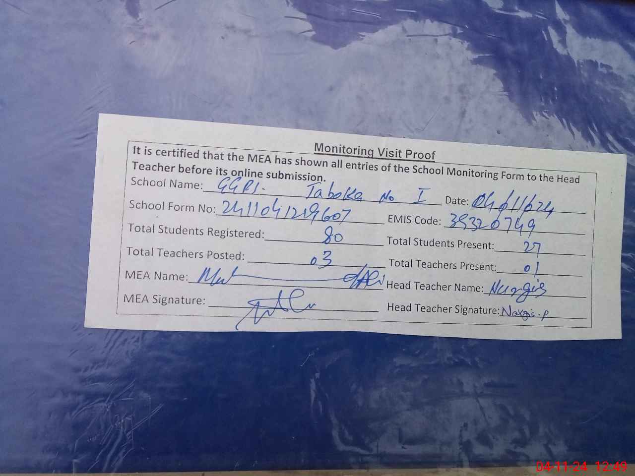 | EMIS Code: 39320749 | Name of School: GGPS JABOKA NO.1 | |||