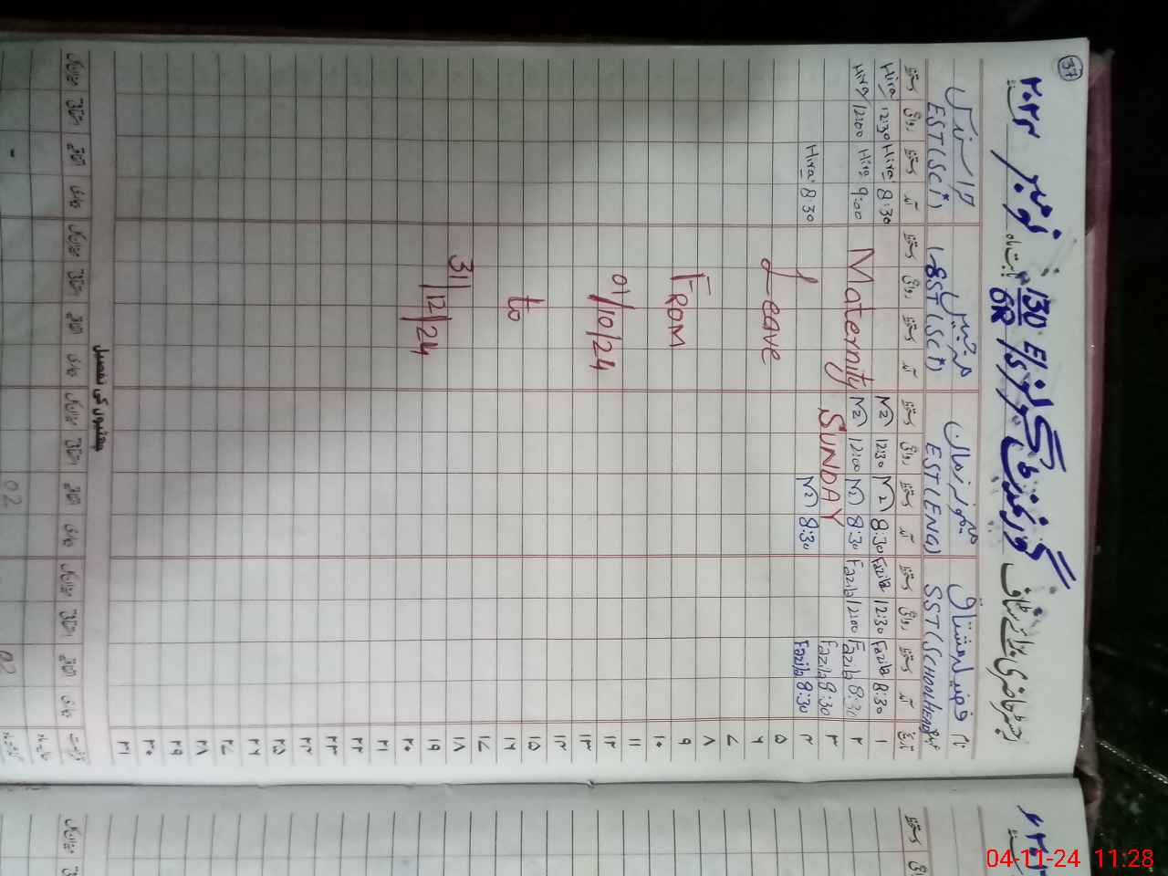 | 31**** | Ma**** Ja**** | Regular | 31 | 0 | 0 | 31 | 0 | 0 | 0 | 0 | 0 | Maternity | |