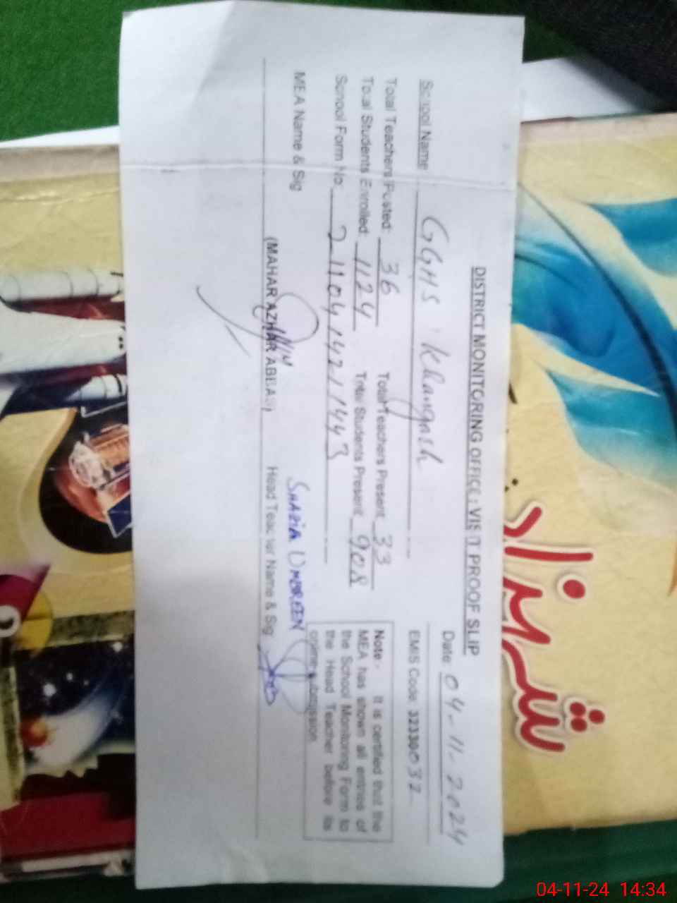 | EMIS Code: 32330032 | Name of School: GGHS KHAN GARH | |||
