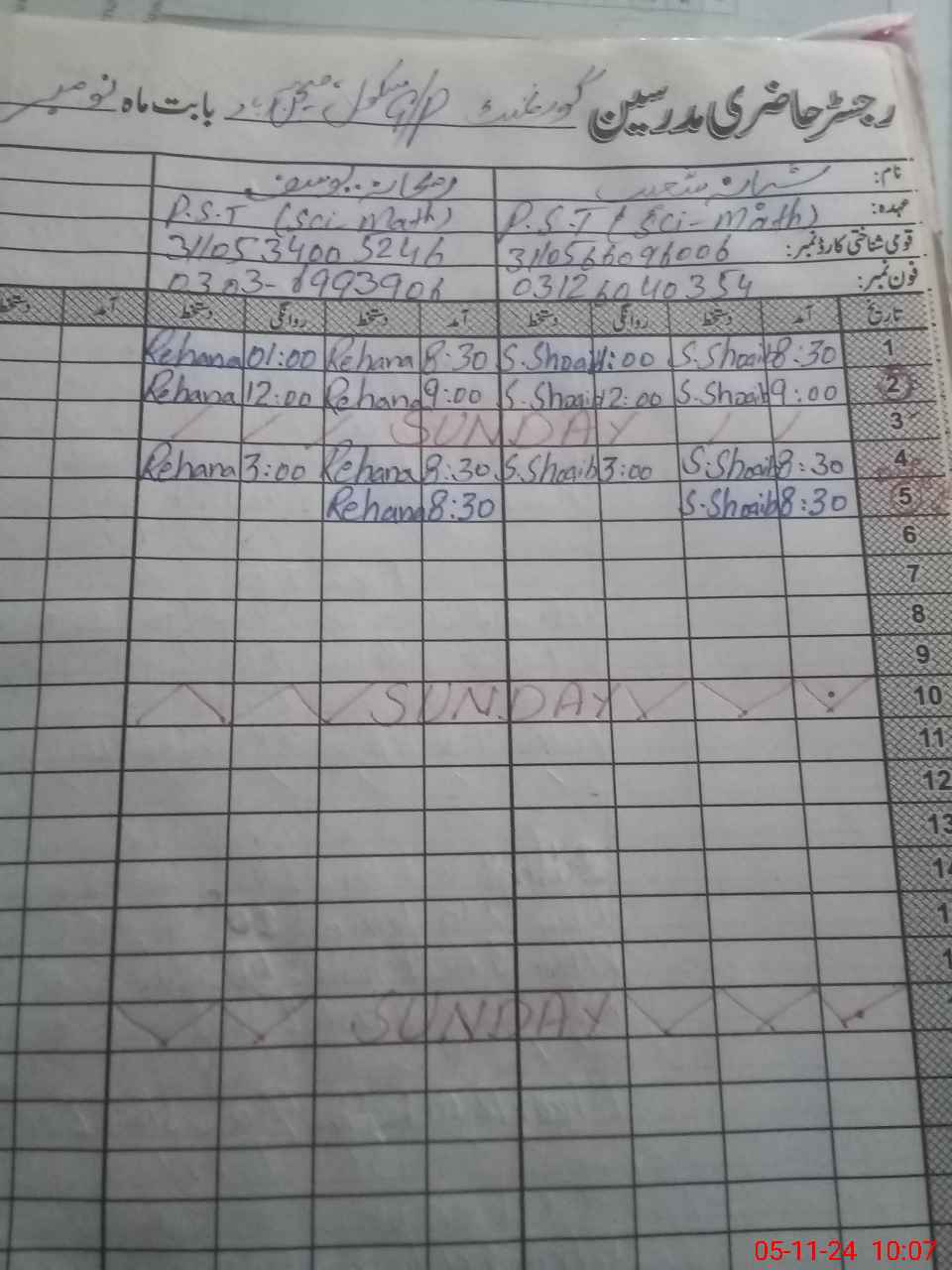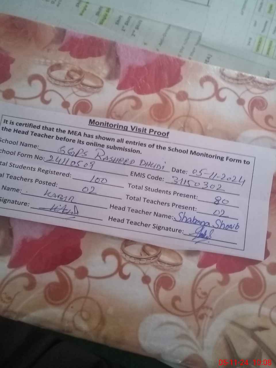 | EMIS Code: 31150302 | Name of School: GGPS RASHEED DHUDDI | |||