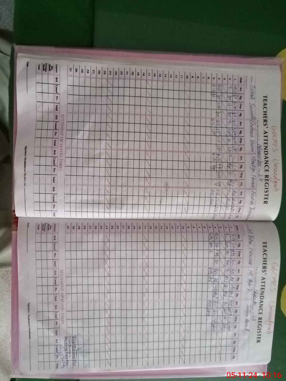 | Leave | Duty | Absent | Maternity | Medical | Ex- Pak |