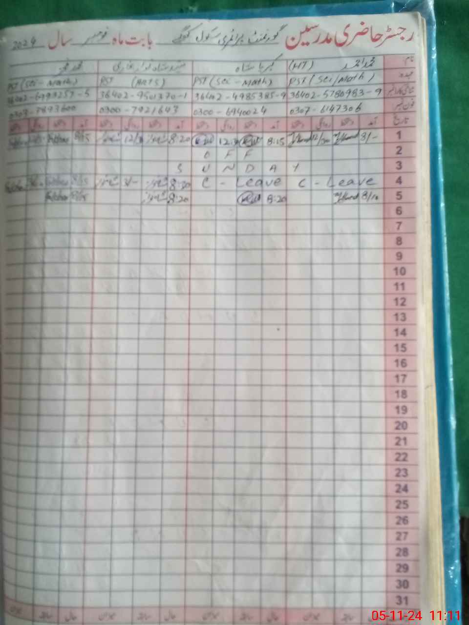 | Name: MU**** Ah**** Designation: (School Headmaster's/Headmistress's) PST Phone/Cell Number: 03**** |