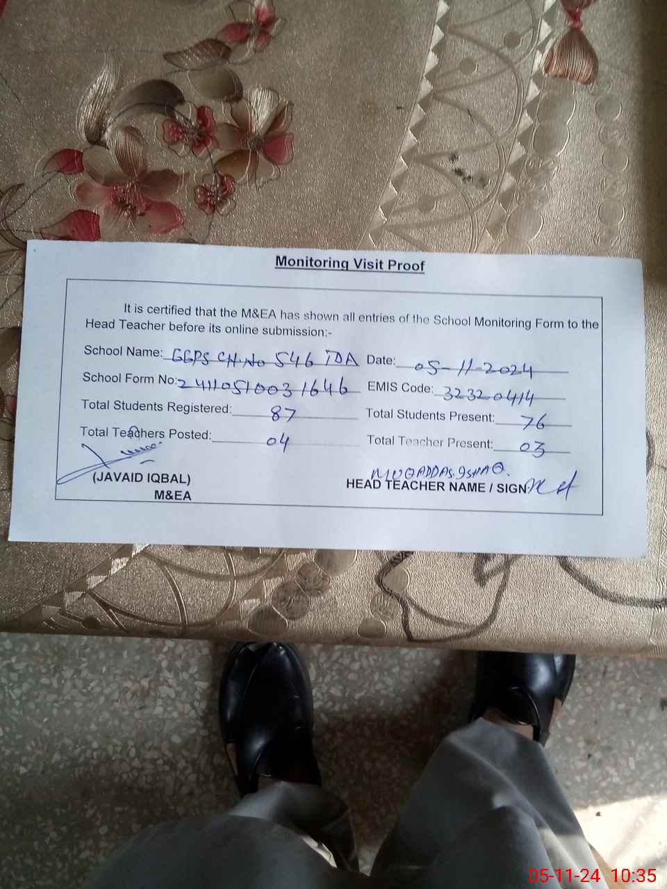| EMIS Code: 32320414 | Name of School: GGPS CHAK NO. 546 TDA | |||