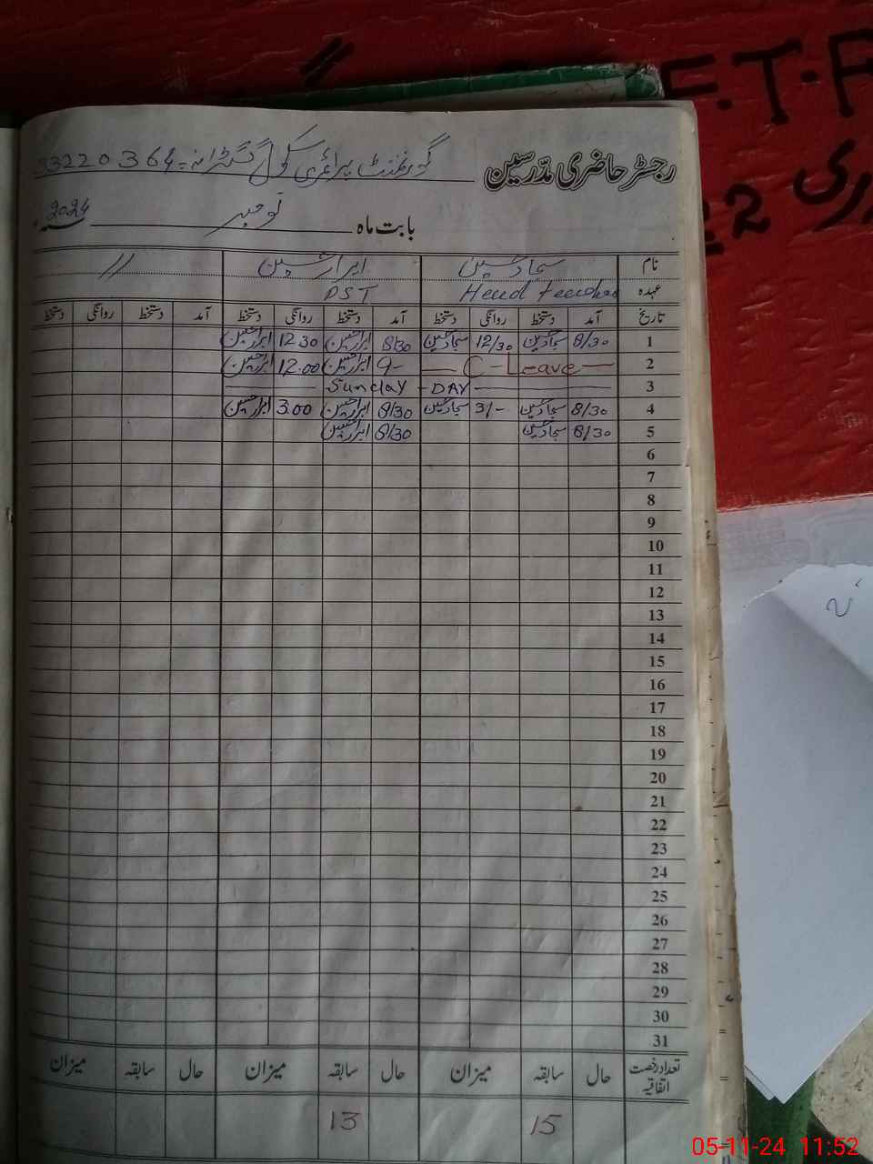 | Name: AB**** NA**** Designation: (School Headmaster's/Headmistress's) PST Phone/Cell Number: 03**** |