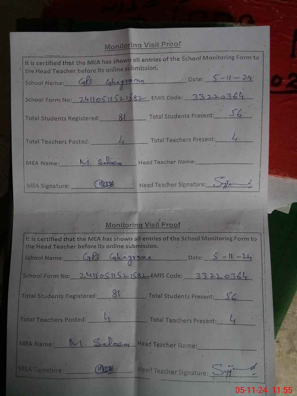 | EMIS Code: 33220364 | Name of School: GPS GHAGRANA | |||