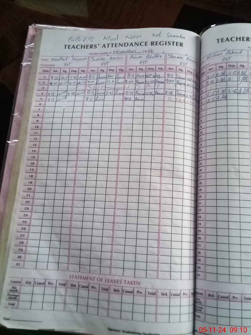 | Name: Nu**** Pa**** Designation: (School Headmaster's/Headmistress's) S.S.T.(Arts ) Phone/Cell Number: 03**** |