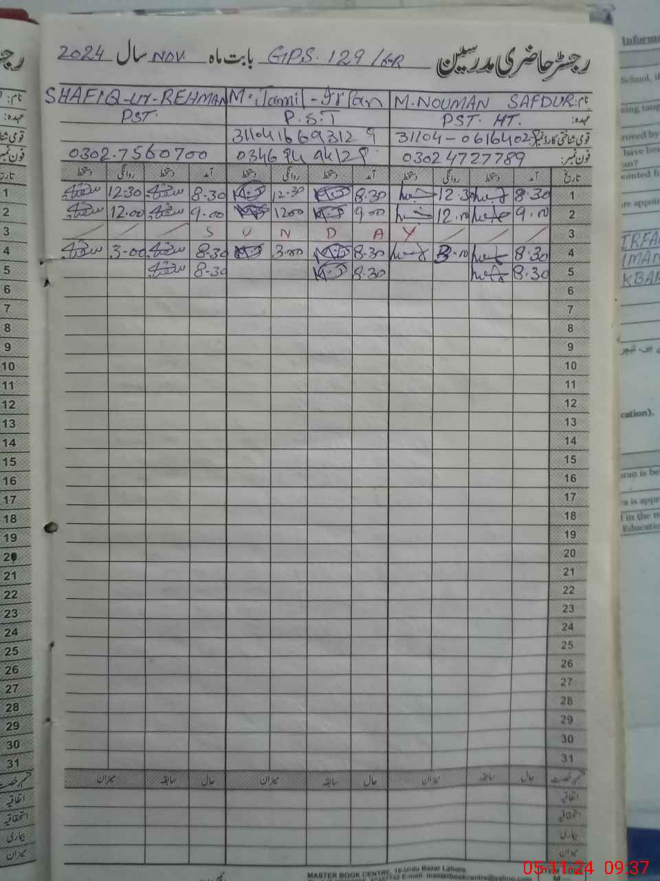 | Name: MU**** No**** Sa**** Designation: (School Headmaster's/Headmistress's) PST Phone/Cell Number: 03**** |