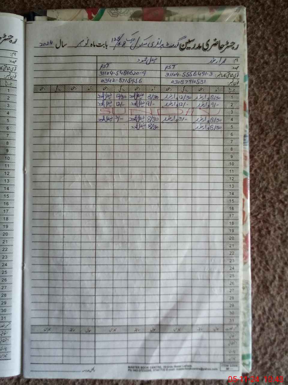 | CNIC | Full Name | Designation | R/C | Absence During Last Calender Month |