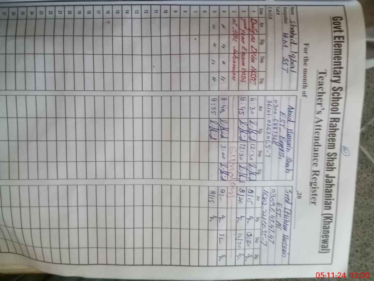 | Name: SH**** IQ**** Designation: (School Headmaster's/Headmistress's) SST(G) Phone/Cell Number: 03**** |