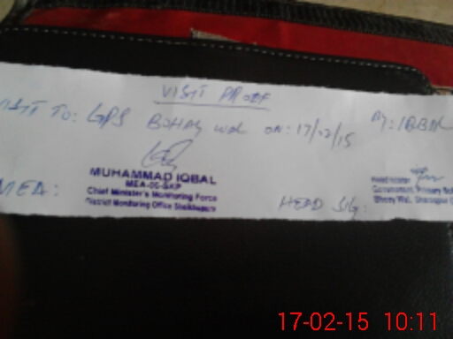 | District: SHEIKHUPURA | Tehsil: SHARAQPUR | Markaz: GHAZI PUR-MALE | Level: Primary | |