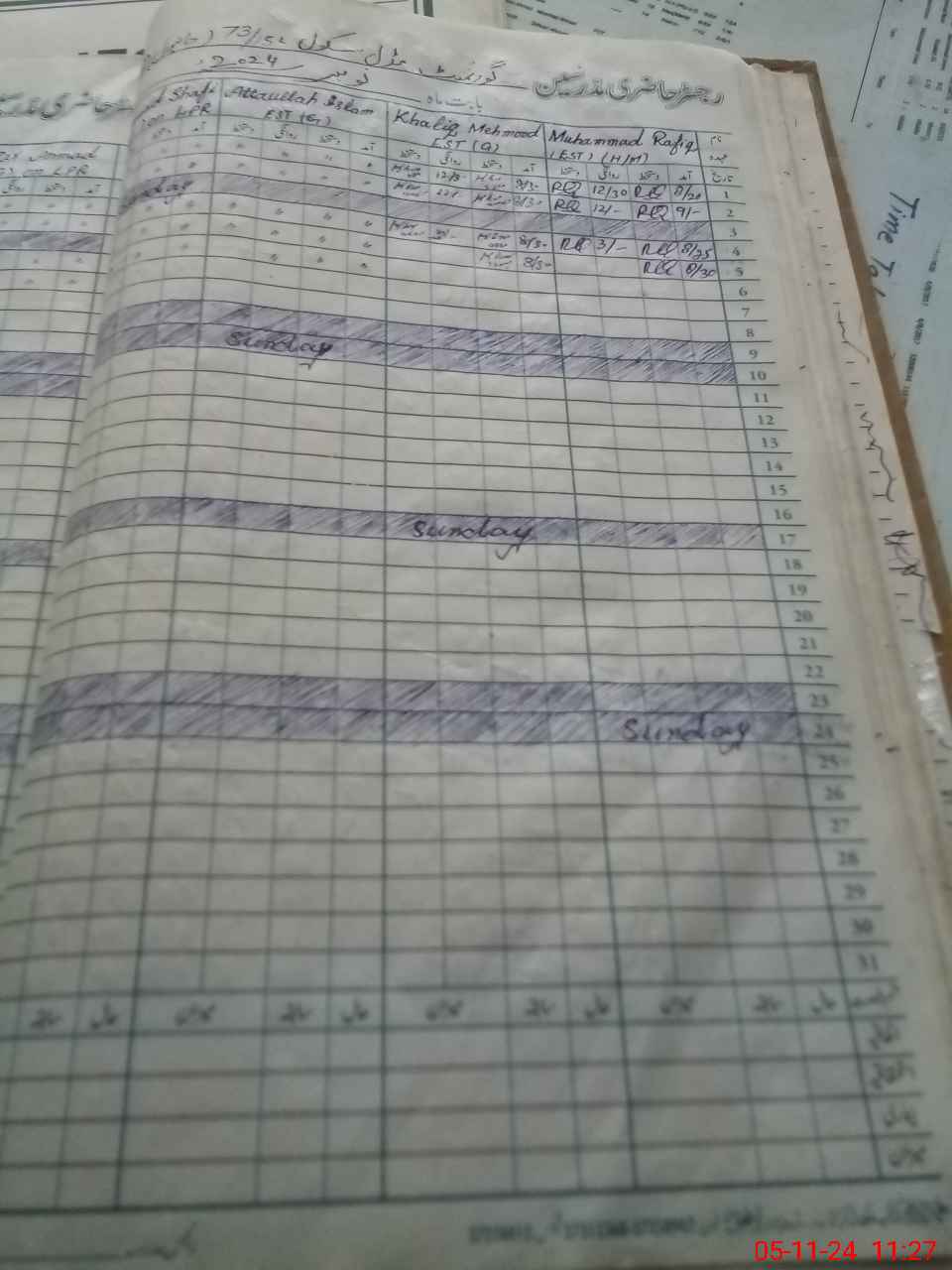 | CNIC | Full Name | Designation | R/C | Absence During Last Calender Month |