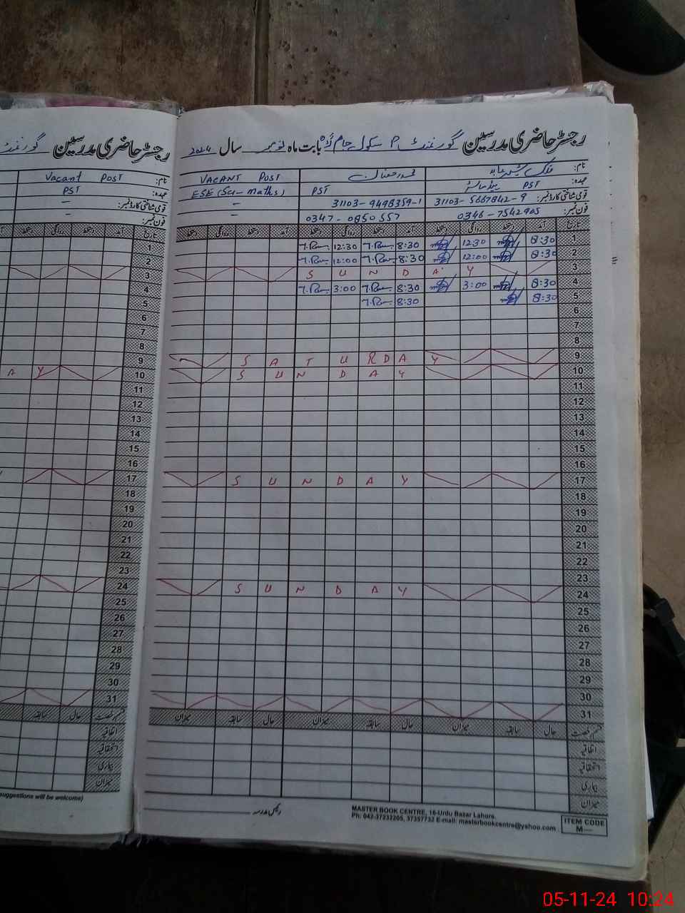 | CNIC | Full Name | Designation | R/C | Absence During Last Calender Month |