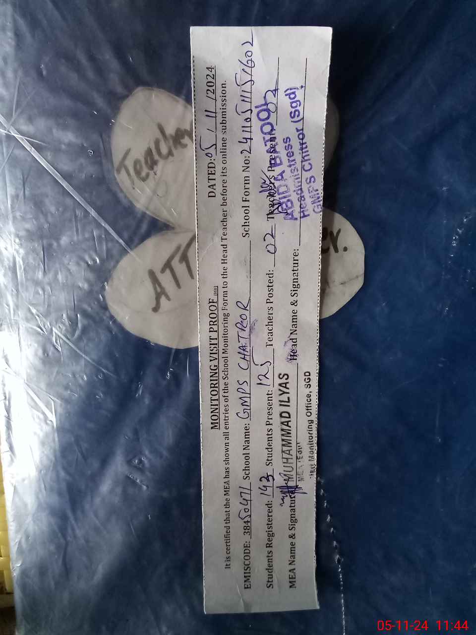 | Attendance Register | Head Teacher | MEA with School | Visit Proof |