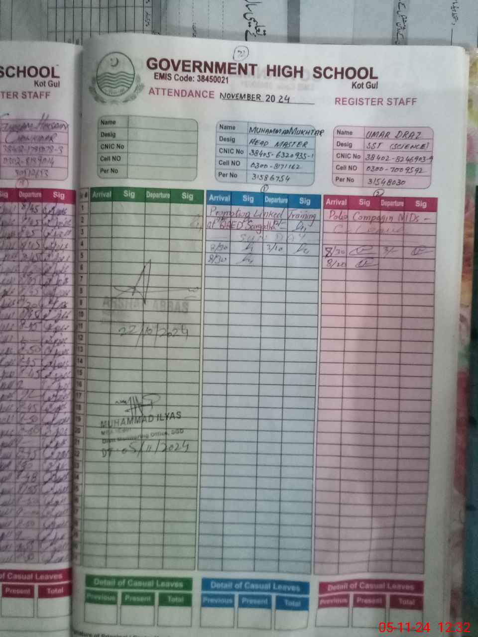 | CNIC | Full Name | Designation | R/C | Absence during last cal. month |