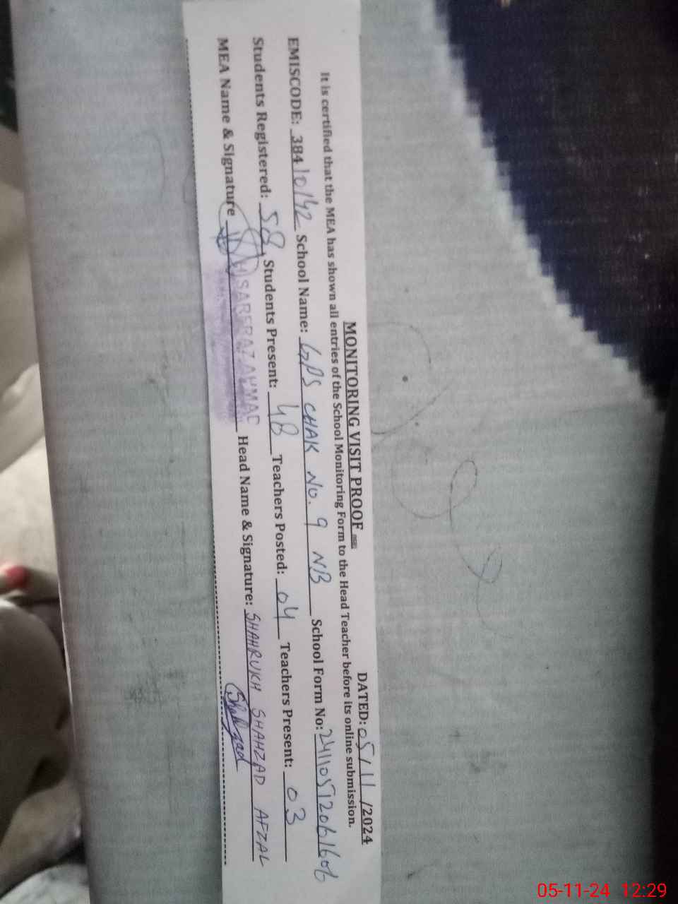 | EMIS Code: 38410142 | Name of School: GPS CHAK NO.9 NB | |||