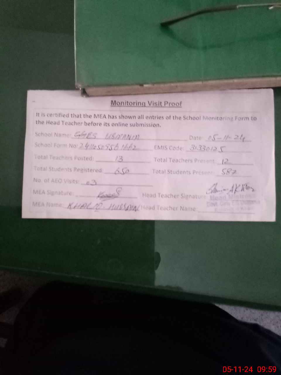 | EMIS Code: 31330125 | Name of School: GGES USMANIA | |||