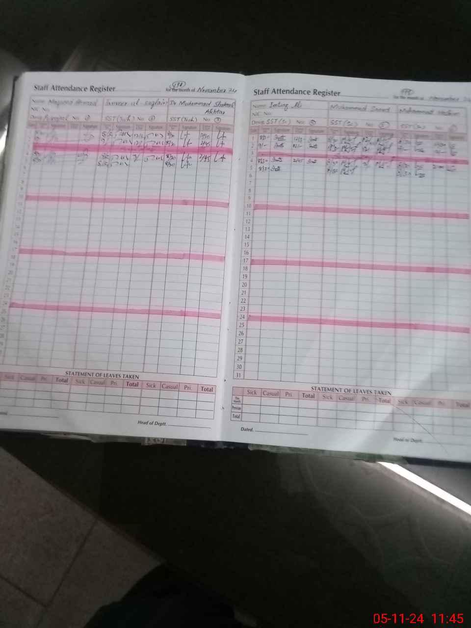 | CNIC | Full Name | Designation | R/C | Absence During Last Calender Month |