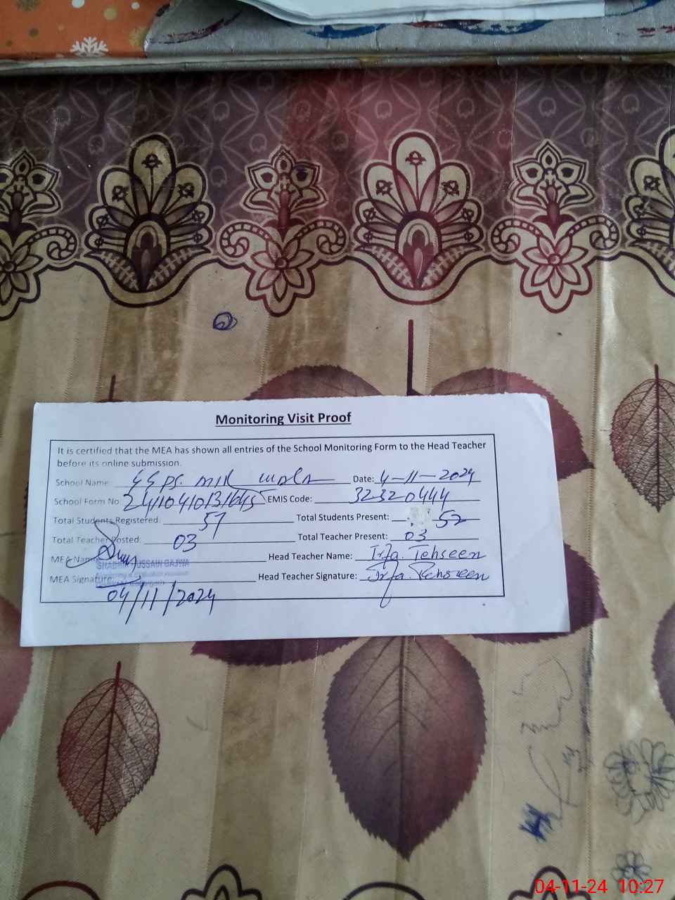| EMIS Code: 32320444 | Name of School: GGPS MIR WALA | |||